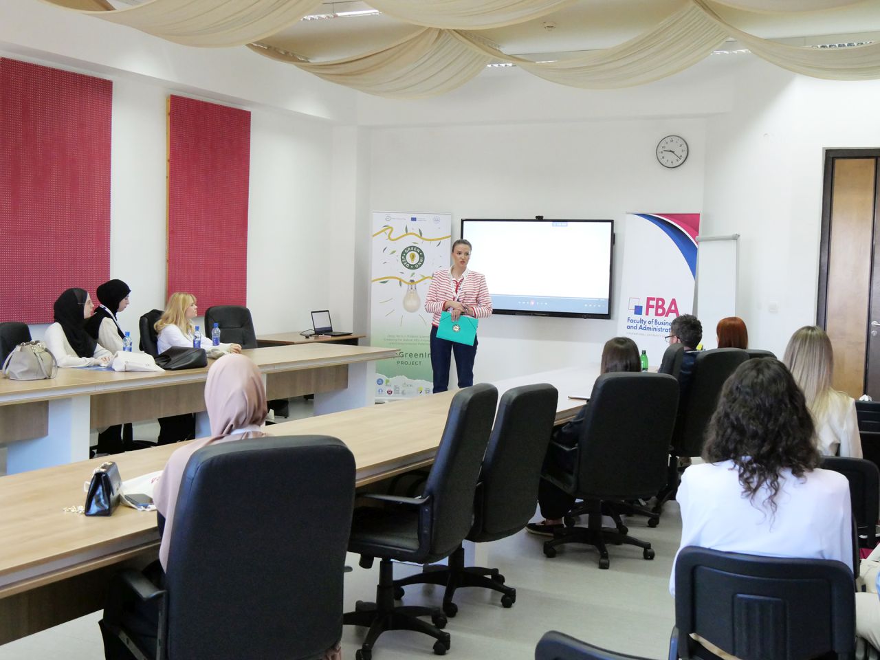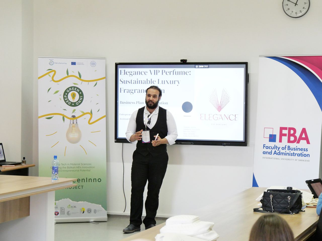 On June 4, 2024, the Faculty of Business and Administration at the International University of Sarajevo (IUS) hosted the Green Business Plan Competition within the DeepGreenInno (DGI) project. Dr. Azra Bičo opened the event, welcomed participants, introduced them to DGI aims and outputs, and explained the competition rules, which was followed by inspiring presentations.
